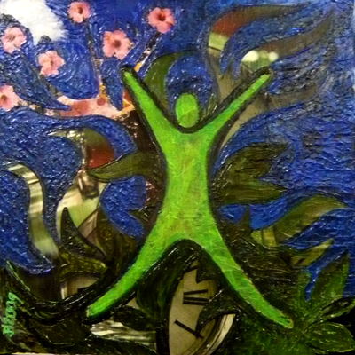 "Printemps " - 2009 40 x 40 Techniques mixtes (Collage + acrylique) Disponible à la vente